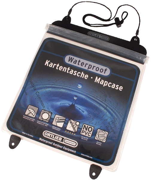 Große wasserdichte (IP64), knickbeständige Kartenhülle mit Klett-Rollverschluss, Umhängekordel. Abspannmöglichkeit z.B. auf Kajak, Rucksack, etc..