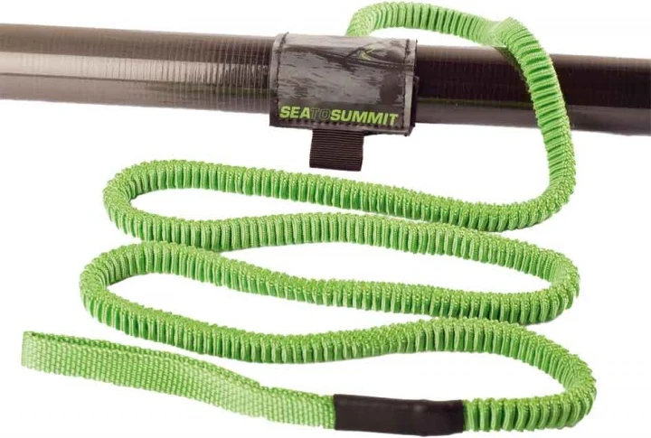 Super stabile aber leichte Paddelsicherung aus Nylon Gewebeschlauchband mit eingenähtem Gummizug; Länge ca. 110 cm, ausziehbar bis 190 cm; feste Schlaufe an dem einen Ende, Doppel-Klettverschluss für das Fixieren am Paddelschaft am anderen Ende, Gewicht 40 g.