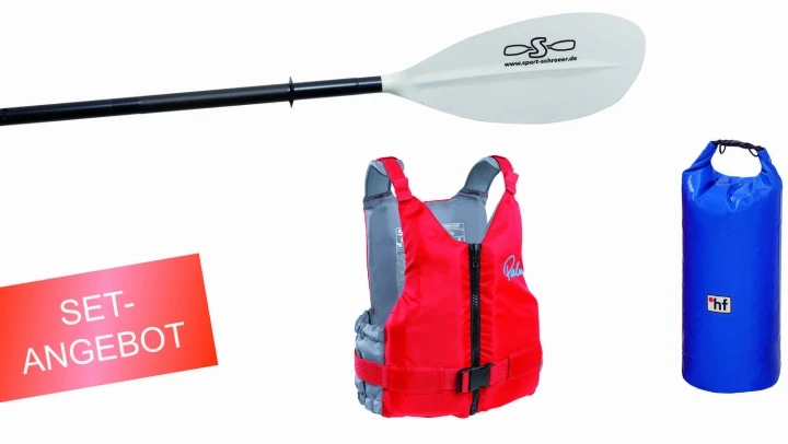 Der günstige und unkomplizierte Einstieg in die Welt des Kanusports. Ein günstiges, aber relativ leichtes Paddel, eine gute einstellbare Schwimmweste und ein Trockenpacksack für das Gepäck. Dieses Set bringt Sie und Ihr Kajak unkompliziert aufs Wasser.